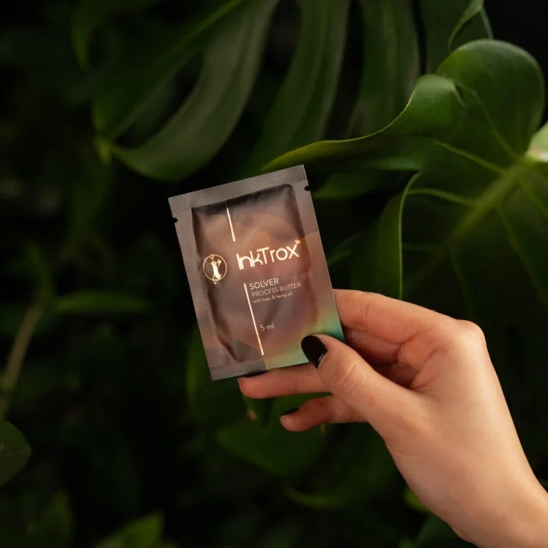 InkTrox Solver Tattoo Aftercare Butter (5ml) delivers gentle yet effective care at every stage - from skin preparation to daily maintenance of healed tattoos. Enriched with hops and hemp oil, this dermatologically tested formula helps calm the skin while promoting regeneration and comfort.