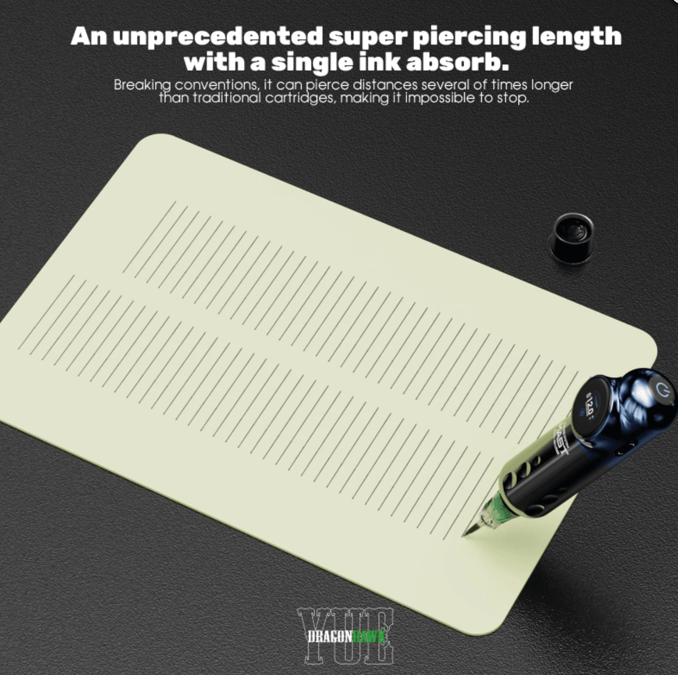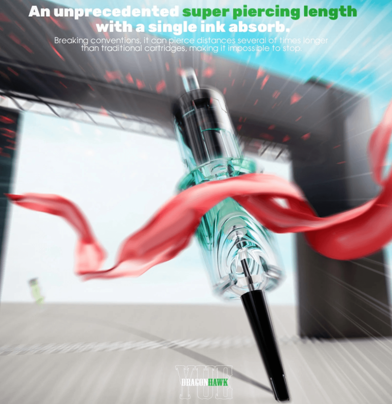 - Unprecedented Piercing Length: Breaking traditional limits, the YUE cartridges provide an unprecedented piercing length with a single ink absorb. This innovation allows for extended tattooing distances without interruption, promoting efficiency in your workflow.