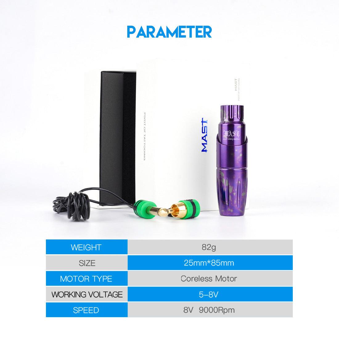 Enhance your tattooing experience with the Mast Tour Special Edition Rotary Pen Machine in Purple – a lightweight, efficient, and professional-grade machine built for both studio and travel use.