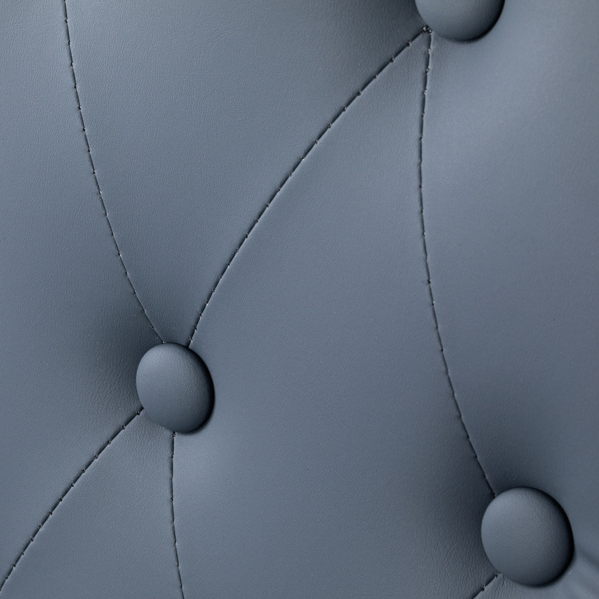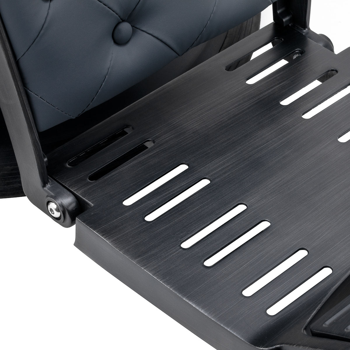 The stable construction of the base with elements in shades of black ensures high comfort of use. Filling with durable, deformation-resistant foam and upholstery made of pleasant-to-touch synthetic leather ensure the durability of the furniture and its comfortable use for a long time. They also make the equipment resistant to moisture, durable and easy to clean. The covering in shades of graphite along with original quilting and decorative buttons give it a unique character. Designer decorative elements inspired by motorcycles, referring to the vintage style, will perfectly fit the atmosphere of barbershops, creating their amazing aura.