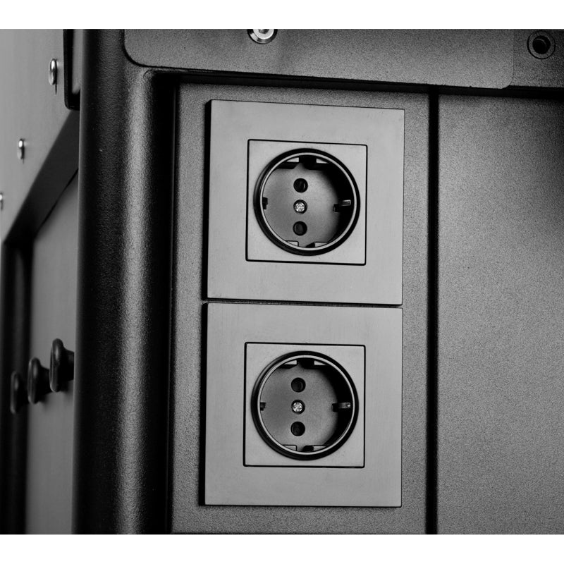 assistant pro ink 701 for storing tattoo equipment. thanks to a solid steel structure, it guarantees a long service life. strong drawers have hidden handles. the aluminum table top will keep it clean when working with pigments. in the front part of the station we have three smaller drawers, one large, roomy cabinet that will accommodate equipment, accessories and much more. the cabinet and one of the small drawers are additionally equipped with steel toolboxes. vertical drawers on both sides have 2 power sockets and 2 usb sockets on one side. cable organizer on the back wall. everything you need during the session organized in one place. gummed wheels (with a brake) make the cabinet, despite its weight, not a problem when moving.