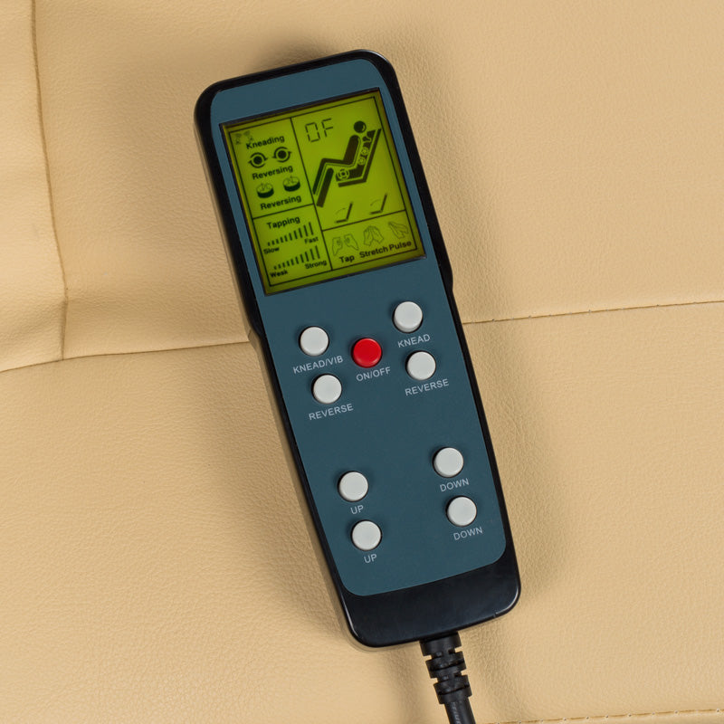 The chair is equipped with a roller and compression massage system.
