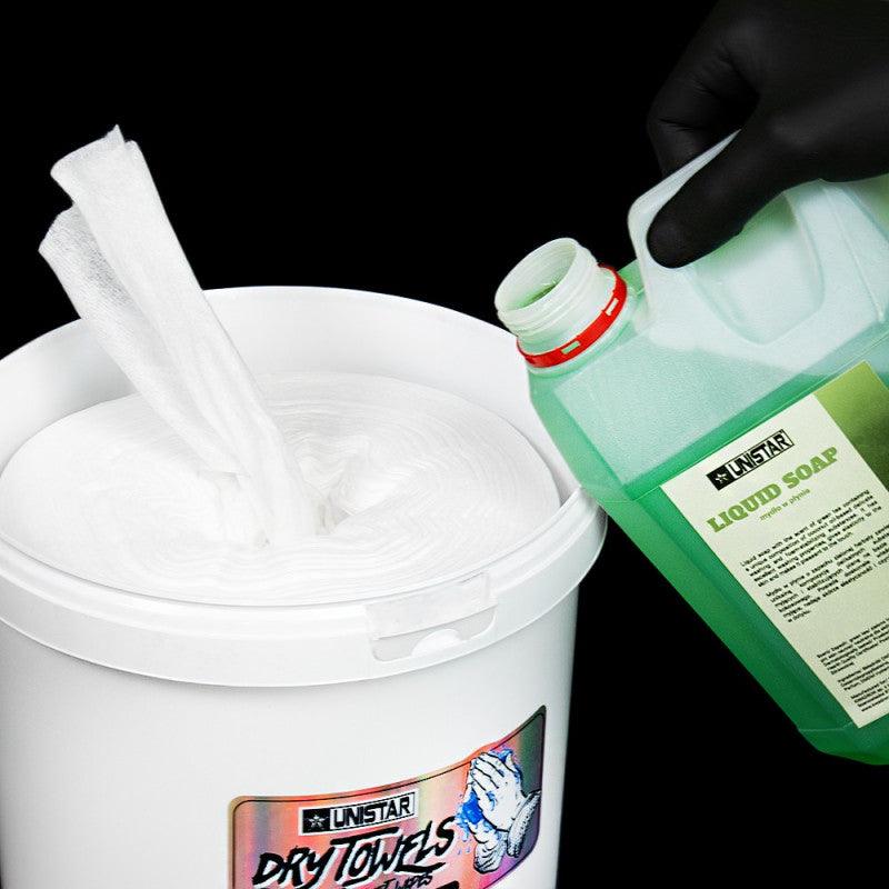 Unistar Soakable Tissues come in a secure, leak-proof bucket, allowing you to infuse them with your choice of soap, disinfectant, or cleaning solution. Within seconds, you'll have 200 ready-to-use wipes, conveniently dispensed through the built-in dispenser for quick and easy access.