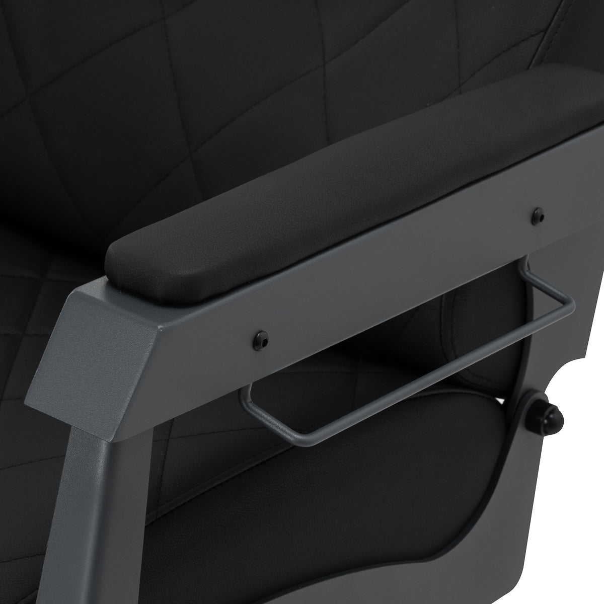 The stable construction ensures safety and long-lasting durability. The seat, filled with deformation-resistant foam, and upholstery made of soft, synthetic leather ensure durability and comfort. The moisture-resistant materials are not only durable but also easy to clean. The black upholstery combined with a graphite frame gives the chair a modern and professional look, while its minimalist style allows it to fit into the décor of any barbershop.