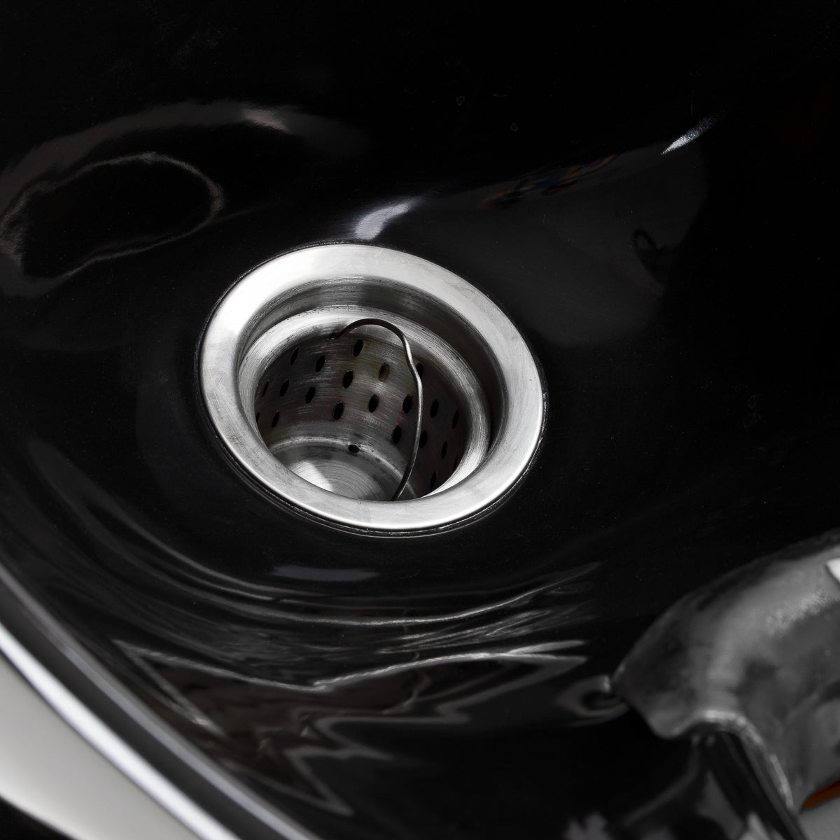 The deep ceramic bowl in shades of black minimises splashing of water and cosmetics during treatments. The adjustable angle of the bowl allows for precise adjustment to the customer's needs. Made of durable material, it is resistant to discolouration, scratches and chemicals, and its smooth surface makes it easy to keep clean. The ergonomically contoured collar provides comfortable head support, and the black plastic cover eliminates the feeling of cold when in contact with the ceramic.