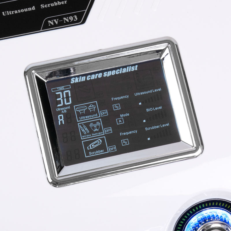 Skin scrubber - cavitation peeling (Ultrasonic peeling) is a new system for deep skincare and regeneration without side effects. This treatment cleanses the skin with ultrasonic waves, allowing thorough removal of excess sebum from pores and hair follicles, removal of keratinized cells, comedones, blackheads, and bacteria. Cavitation peeling, as a system, acts gently on the skin through pleasant, natural vibrations without electricity. Using this device enables deep skin regeneration through rapid and effective renewal and cleansing at depth, resulting in visibly renewed and refreshed skin. It is a painless procedure usually perceived as pleasant. Cavitation also positively affects deeper layers of the epidermis, making it an excellent prelude to further cosmetic treatments (acid exfoliation and/or sonophoresis and iontophoresis and others).