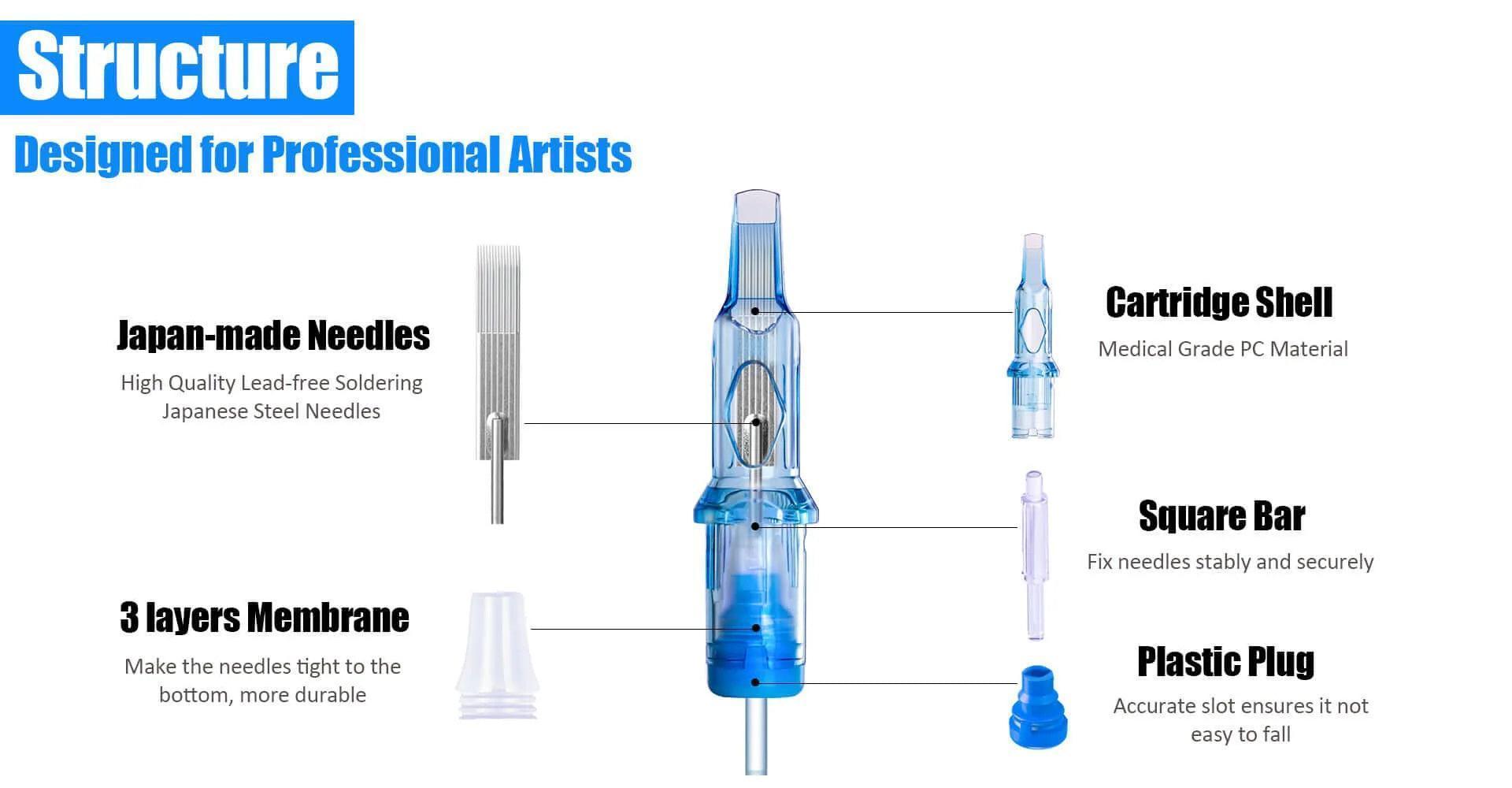 - Premium Materials: Each cartridge is constructed from high-quality Japanese stainless steel needles, held together with lead-free soldering for enhanced safety and durability. This commitment to quality ensures that artists can work with confidence.