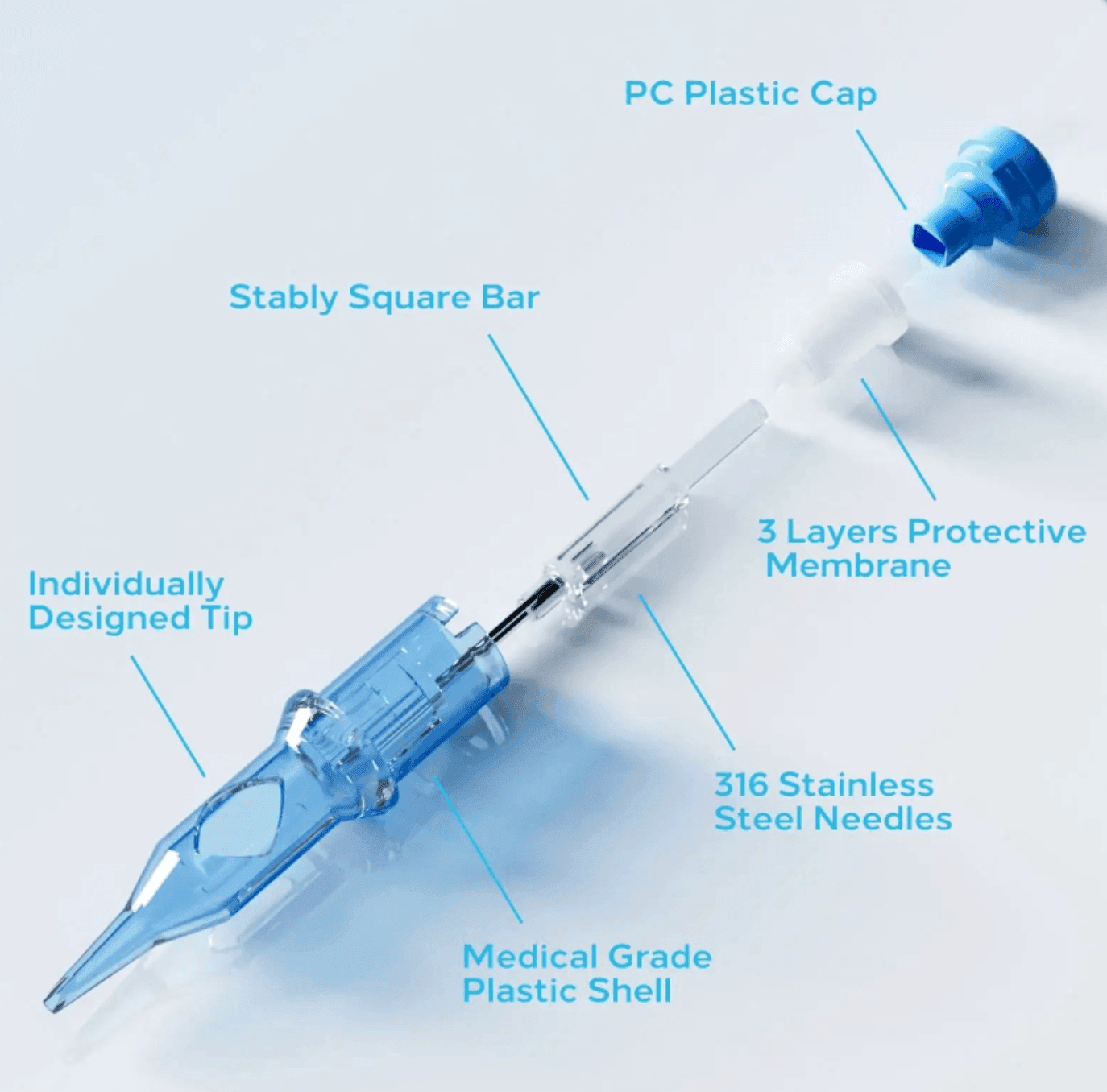 - Enhanced Needle Stability: Individually designed cartridge tips hug the needles securely, while a specially designed drive bar with cross-section support increases needle stability. This combination ensures precise control during application.