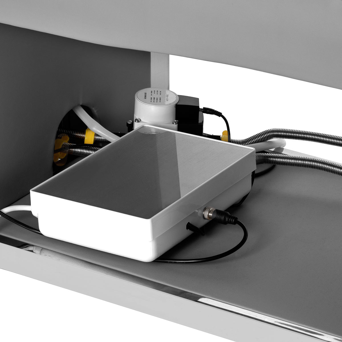 The Head Spa 017 SPA lounger is a combination of functionality and modern design. Equipped with a solid stainless steel frame, it guarantees stability and durability. The ergonomically profiled lounger is covered with soft synthetic leather in shades of grey, ensuring maximum comfort during treatments. In addition, the space under the lounger allows for convenient storage of cosmetics and accessories, making it an excellent choice for professional beauty & wellness salons.