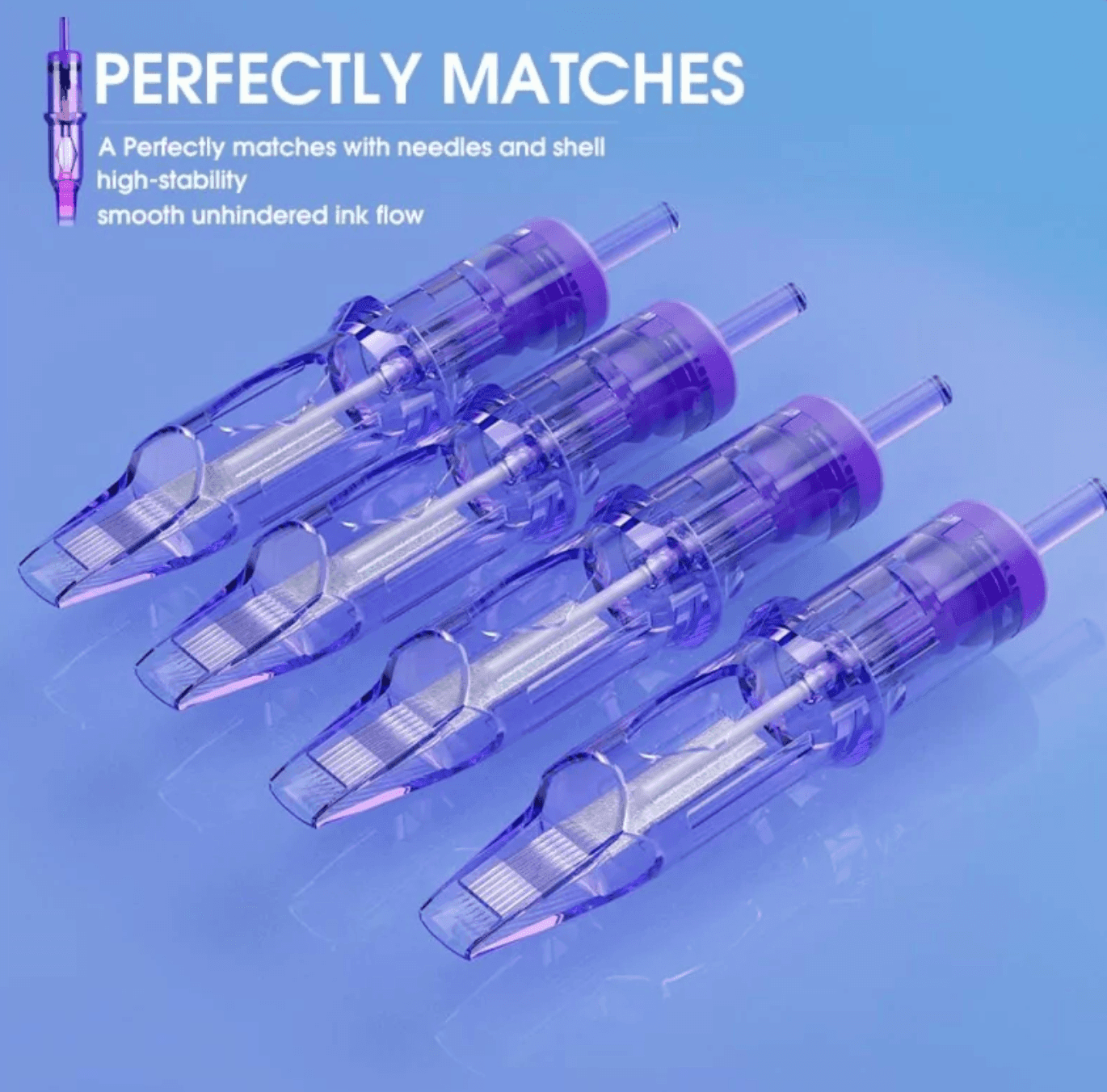 - Perfect Fit and Stability: The cartridges are perfectly matched with their needles, providing high stability and allowing for smooth, unhindered ink flow. This design minimizes any disruptions during tattooing, enhancing the overall experience.