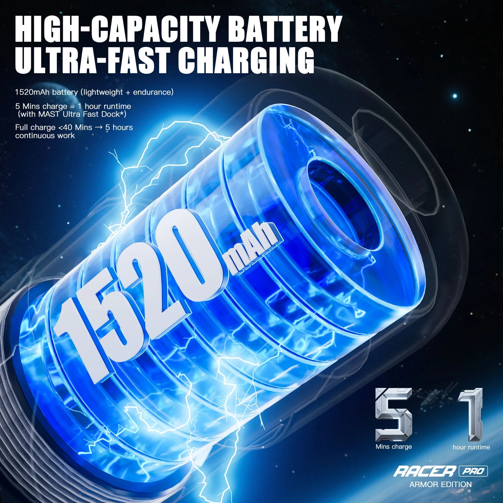 Equipped with two 1520mAh batteries and MAST Ultra Fast Charging technology, the Racer Pro delivers: