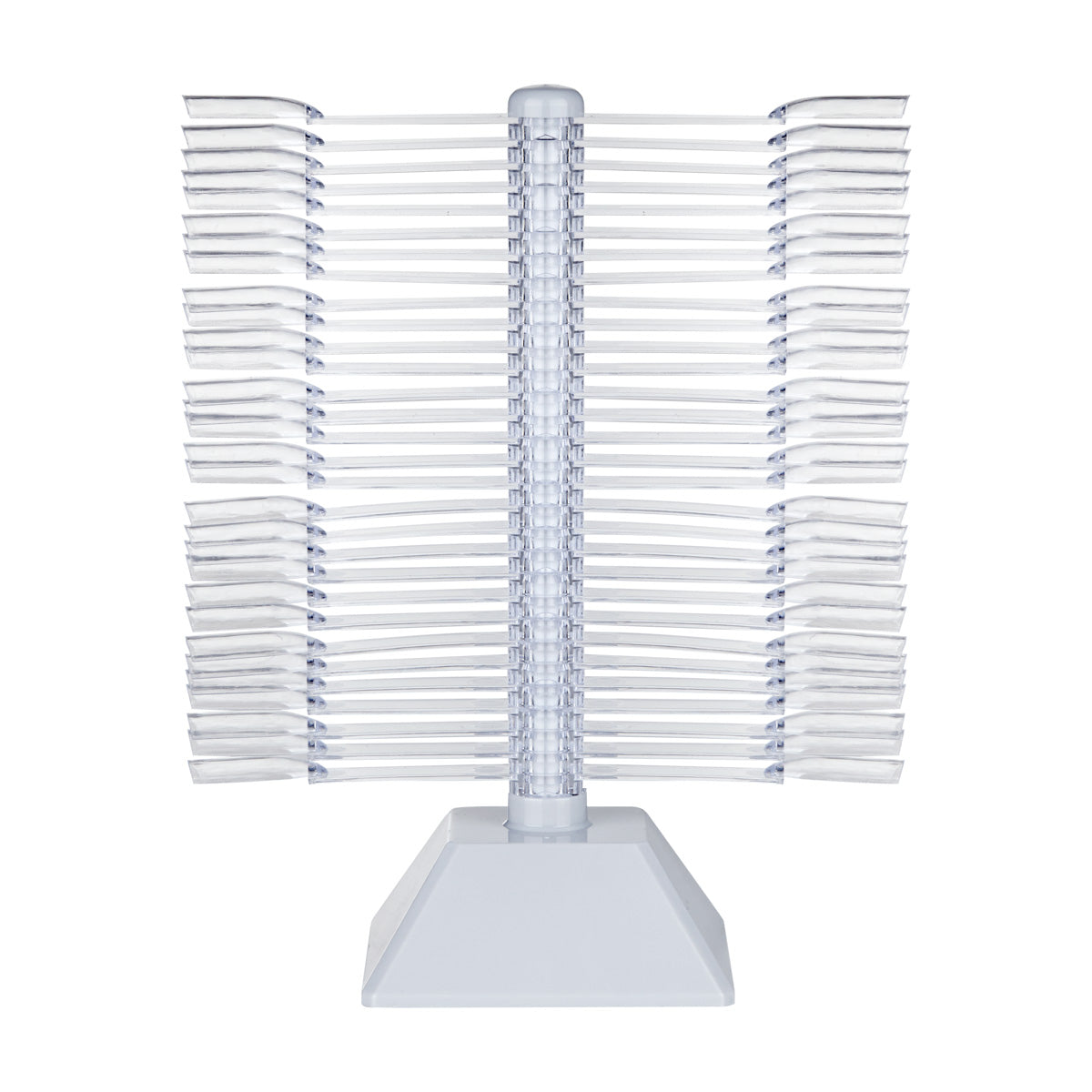 The stencil allows for an interesting and aesthetic presentation of all colors of classic and hybrid varnishes or gels. It consists of 30 transparent sticks, each of which on both sides is ended with a square-edged tip. Each tip is made of durable plastic. The stencil is easily folded for easy storage of the whole thing.