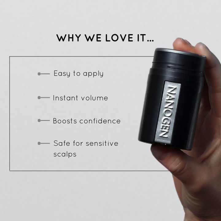 Available in 10 natural shades, Nanogen Fibres blend seamlessly with your hair for an undetectable look. They are dermatologically tested, safe for sensitive scalps, and won’t clog pores or interfere with topical treatments like Minoxidil.