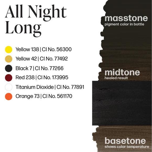 A cool black-brown pigment for melanin-rich skin, designed for precision and long-lasting results. All Night Long, part of the Perma Blend LUXE Microblading Pro range, is a cool black-brown pigment specifically designed for melanin-rich skin tones. With a lower opacity and a blend of organic and inorganic ingredients, this pigment delivers stunning, natural-looking results that heal beautifully. Its cool undertones make it perfect for creating depth and definition for clients with darker skin tones.