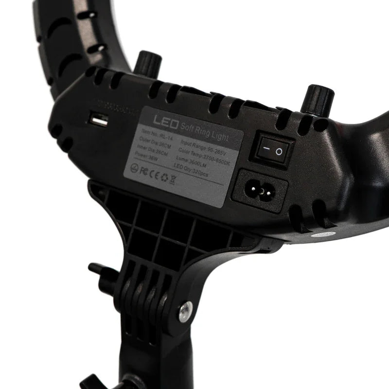 • 14-inch LED ring light with 320 ultra-bright LEDs
