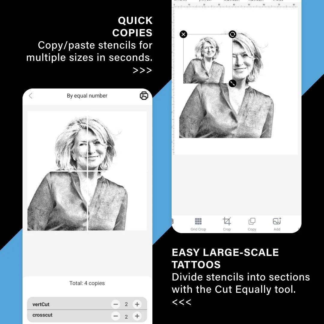 - Quick copy: duplicate your design into different sizes