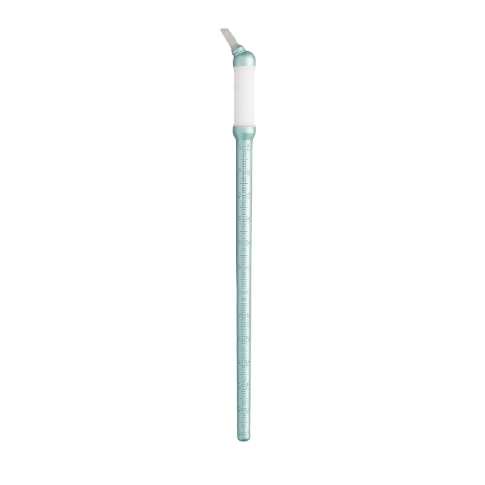 Crafted with 14 needles set at a 30-degree angle, the 0.25mm blade ensures optimal pigment application and ergonomic control. The non-slip, soft-grip handle includes a built-in ruler to help you achieve even, symmetrical results every time. Completely safe and sterile, the pre-assembled, single-use microblade ensures your clients’ safety while saving you time.