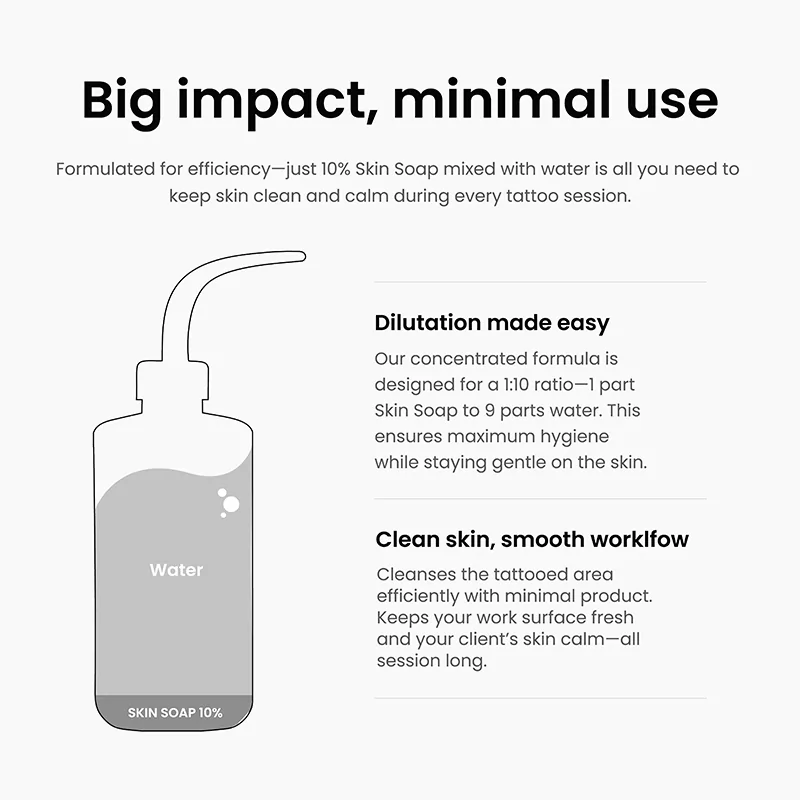 Its non-irritating, vegan formula supports all skin types and helps keep the skin calm, hydrated, and ready for precise work. Yumain Skin Soap is also suitable for cleaning tattoo machines and pre-soaking equipment thanks to its non-corrosive properties, promoting safer, more efficient studio practices.